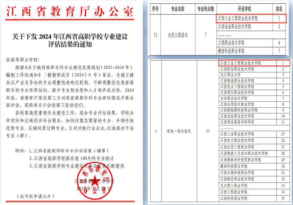 江西工业工程职业技术学院:光伏全省第一,新能源、新工科两大专业群助力85%高就业率